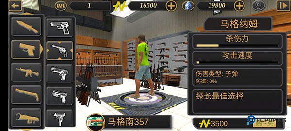 价格:3500金币,伤害类型:子弹;使用马格南357子弹,杀伤力较低,攻击速度极慢;探长最佳选择