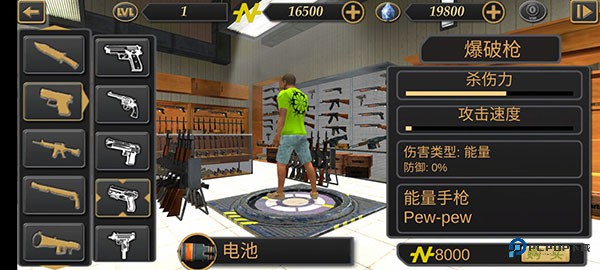 价格:8000金币,伤害类型:能量;使用电池,杀伤力中上,攻击速度极慢;由能量手Pew-pew