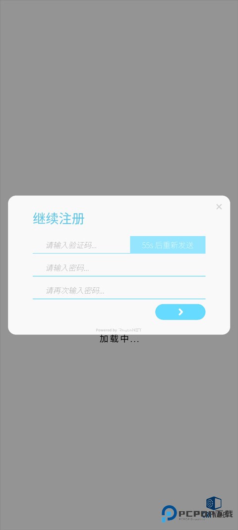 2、然后填写验证码,以及设计密码,点击右下方箭头即可注册成功;