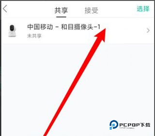 4、从已绑定的设备里选好需要共享的摄像头。