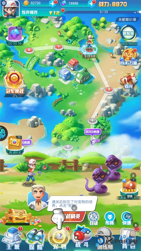 9、主界面暗藏玄机:主城、探险、训练师等众多功能待你自由探索体验。
