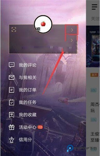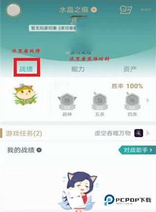 2、你的名字显示在个人中心顶部,紧挨着名字右侧会有一个小箭头标识,点击这个小箭头进入 “战绩和互动” 功能区域。