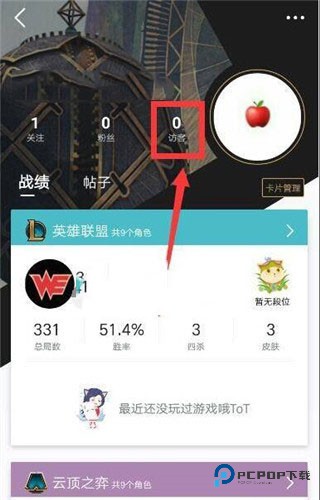 3、在战绩和互动的主界面,头像和昵称下方有几个重要入口,其中就包括 “关注”、“粉丝” 和 “访客”。想了解谁访问过你的个人空间,点 “访客” 那个选项就能看到记录了。