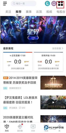 1、打开掌上英雄联盟,在应用首页的右上角找到四个小方块拼成的网格图标,点击它,接着选择 “经典模式” 进入对应的界面。