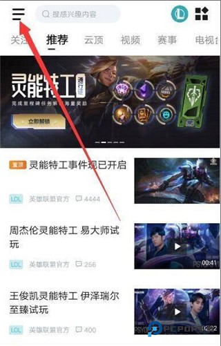 1、启动掌上英雄联盟,在首页的左上角位置,有一个三条横线叠放的菜单图标,点击它进入个人中心页面。