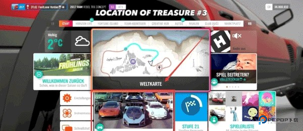 1、进入世界地图,寻找财富岛宝藏2,选择获取财富岛宝藏2路线,再查看比赛用的车型。