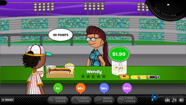 老爹热狗店中文版是著名老爹系列的一款经营模拟游戏,你将在这里开一家人人都爱的热狗店,制作各种口味好吃的热狗给顾客们,这样才能逐渐扩大店铺规模,从小摊到店面一步步做大。老爹热狗店中文版玩法简单,只需要你在前台得到更多订单,然后在后台制作热狗,点击play开始游戏。开全国连锁,提升店铺,扩大经营范围。