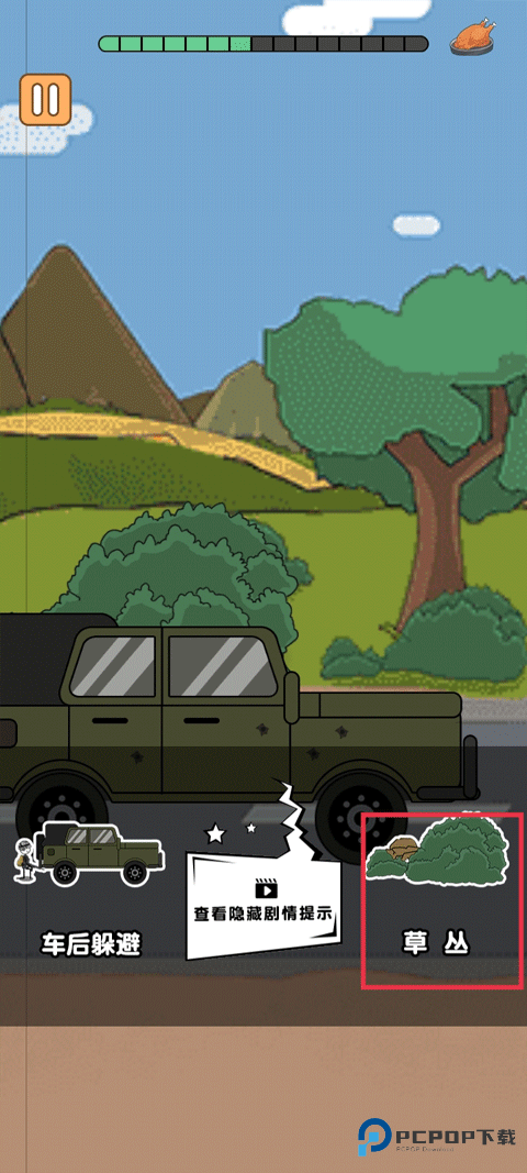 8、躲在汽车后后,子弹打在汽车上会爆炸,“草丛”。