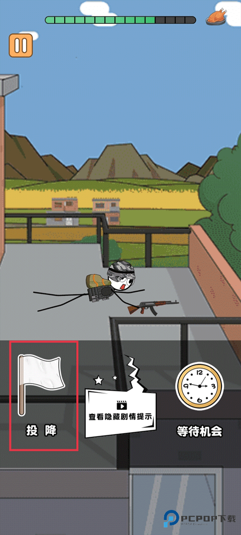 12、等待机会的话,敌人早攻上来了,“投降”。