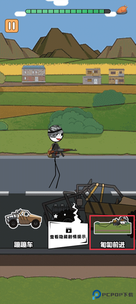 15、拿物资的话,蹦蹦车太过于明显,“匍匐前进”。