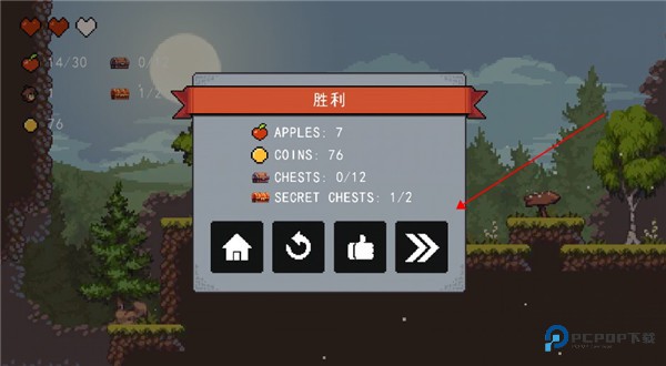 7、此件可以用来远程攻击,但需要收集苹果才能攻击,左上角就是你目前苹果的数量以及可攻击次数