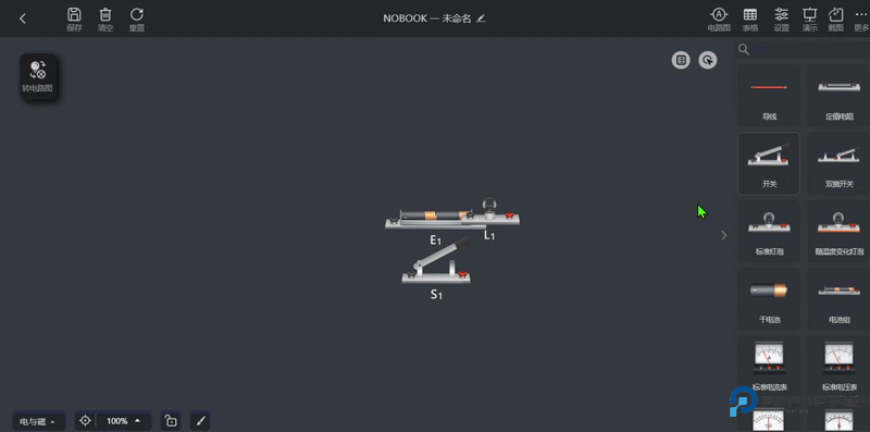 2、根据需求在右侧器材栏选取需要的器材,即可进行组装与探究;