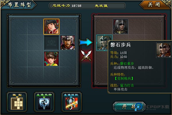 2、步兵、骑兵、弓兵混搭起来,找到克制链的妙用,逆风局也能反转获胜。