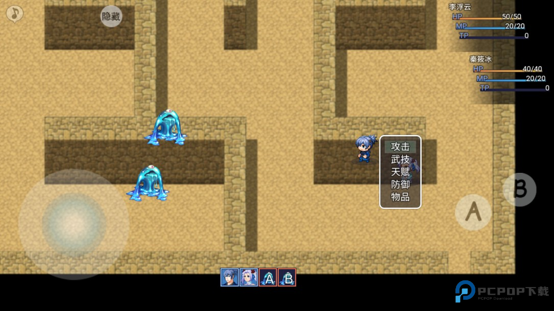 5.靠近怪物之后会开始一段战斗,通过右边的按键来击败敌人。