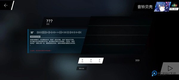点击进入后看见曲名、难度、曲绘均被隐藏。左边有一段话,这就是官方留的线索。提炼关键词“微波加热区”,官方也提示在主线中寻找线索。于是,我们很快联想到了这个曲子!