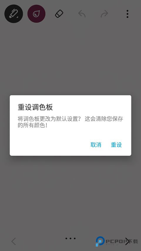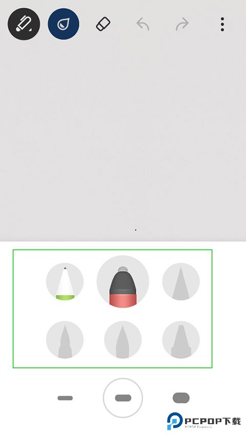 3. 按住绘图纸,弹出画笔选择。免费版提供三种笔刷和六种颜色可供选择。此外,在标记笔选项中有不同的厚度和颜色。这两种笔用起来还是不一样的。完成笔记后,您可以打印或保存它们。右上角的小标签可以用来设置这个页面的焦点,方便在页数增加的时候快速找到。
