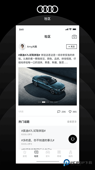 2、社区:关注志同道合的的朋友,参与社区活动和热门话题,通过线上和线下渠道与社区朋友分享生活和观点。