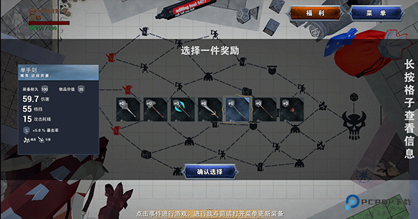 2、地图上闪红光的地方戳一下!先领奖励物资。遇到武器别急,手指按着图标不放会弹出详细属性面板。