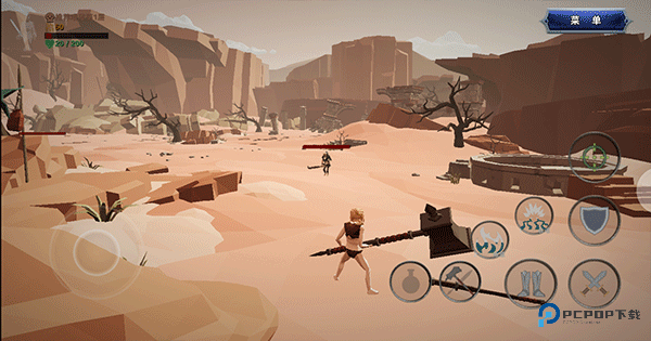 5、右下区域集中了战斗技能 —— 普攻剑刃标志、闪避翻滚图标、盾牌防御按钮,配合着用效果更好。