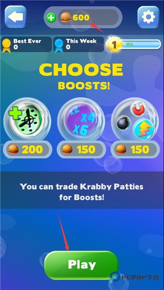 2、这里我们可以选择不同的角色,目前我们只能使用海绵宝宝点击它;