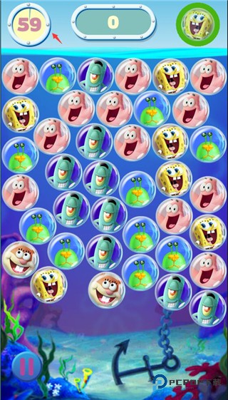 3、消去海绵泡泡,找到隐藏在关底的钥匙泡泡,击中即可完成本关卡。