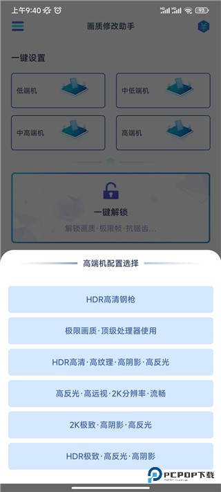 2、在里面选你想要实现的画质或帧率效果,嗯…… 尽量参考软件的推荐设置,避免选太高导致卡顿。