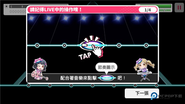7、正式进入游戏后,会为玩家提供操作指南,跟着音乐节奏,点击下方开启原点;