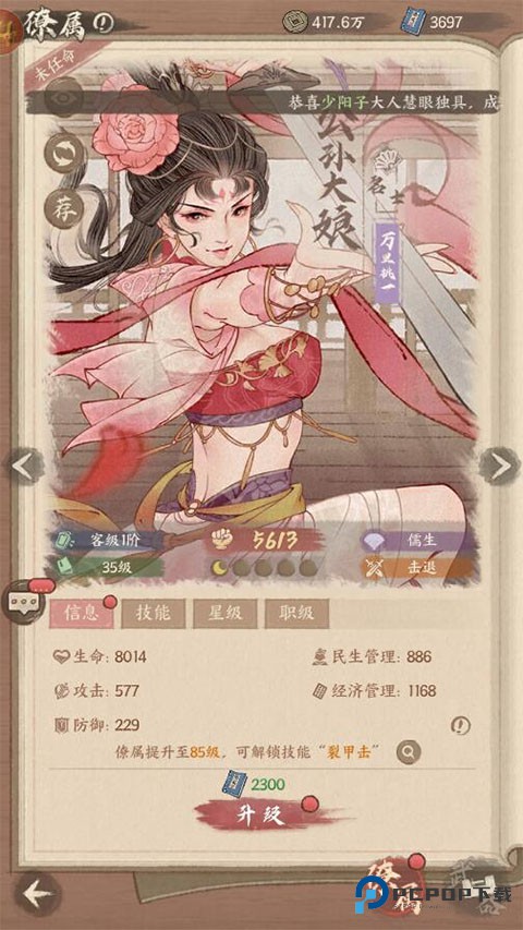 5、最后点击职级,我们可以研习相应的技能来提升攻击和防御属性