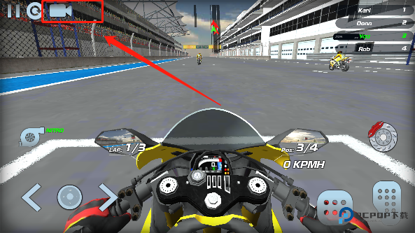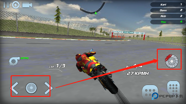 在经历弯道的过程中,同时点击方向键与急刹键可轻松达成压弯的操作,具体效果如下图所示