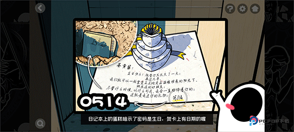 6、日记本上的蛋糕暗示了密码是生日,贺卡上有日期