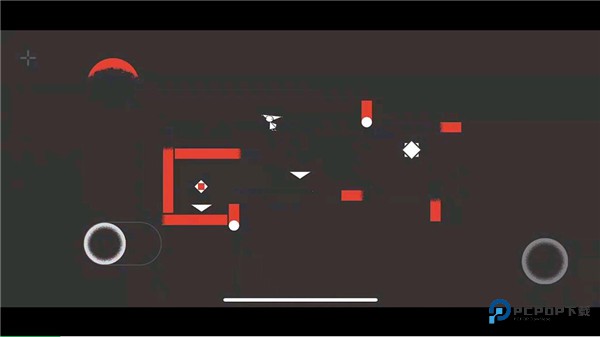 7、第七关,先跳起,触碰上方开关,等待机关出现,向下跳跃激活下方机关,之后将中间和右边的白圈激活即可开启全部机关,然后正常过关即可。