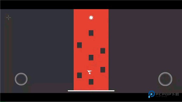 5、第五关,本关为竖屏模式,不断跳跃切换场景向上爬,触碰到上方白圈后,场景变化为横屏,按照一开始继续向上跳跃即可。