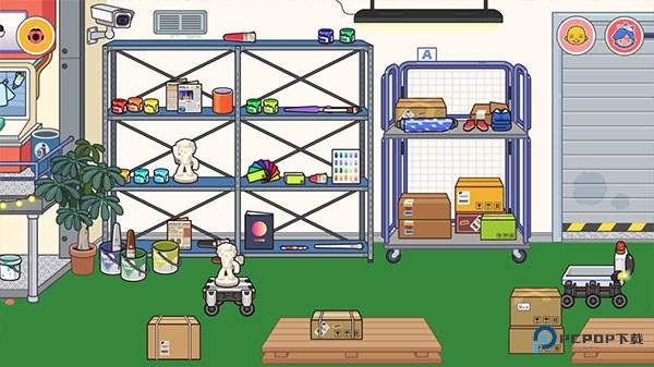 4、继续左滑进入染色区,在货架上选择颜料,为雕塑上色。