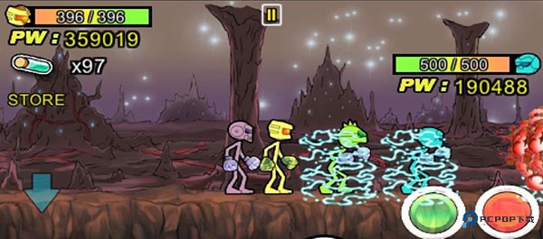 1、首先,火柴人的金币是足够多的,打开LOADGAME,点击NEXT(针对于初次玩家)。直到进入第一关,不管你是在第一关还是在更多的关卡,你都应该购买能量球,也就是这个,然后再购买满格的生命。