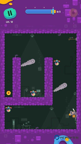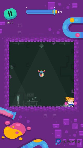 4、游戏内玩家将帮助博士使用勾爪改变前进方向,躲避前方的危险,而且你还可以收集关卡中的道具和物品。