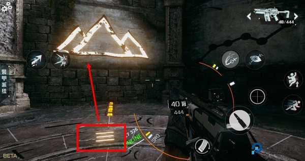 接着马上站到【2】按钮上,这次得兼顾中间圈和外面圈,慢慢挪动它们,对准目标是让墙上那座山的图案亮起来,亮山之后也要马上从【2】按钮下来。