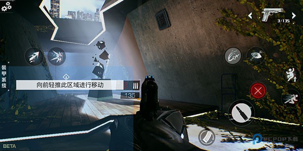 4、画面左下角那片区域就是虚拟摇杆了,手指轻轻滑过去推一推,角色就会朝你指的方向前进或后退。
