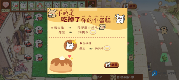 6、游戏采用无尽闯关模式,小金毛的攻势会越来越猛。需要不断用爱心升级现有小狗或新增单位,防线一旦出现漏洞记得及时修补。