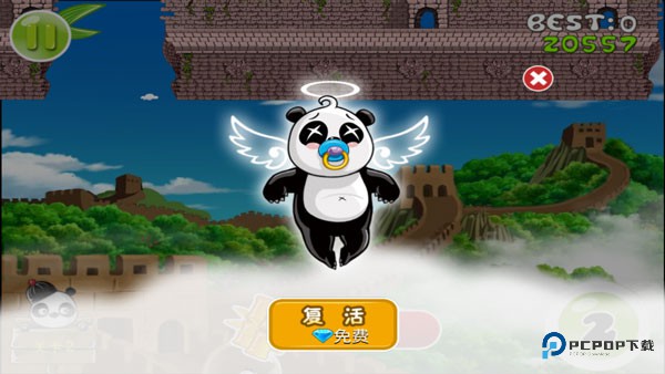 5、要是熊猫不小心掉落悬崖,系统会赠送一次免费复活机会,抓住时机继续前进。