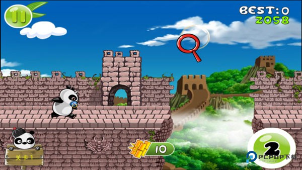 4、加载一小会儿后,游戏正式开启,你需要不停点击或滑动来让熊猫跳跃和奔跑。