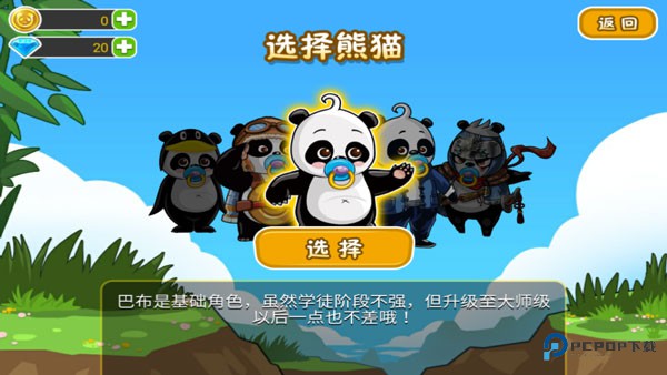 3、接着,选只萌萌的熊猫角色来控制,每只都有独特外观。