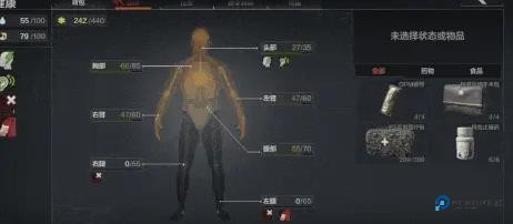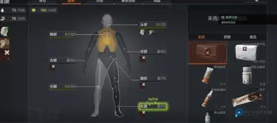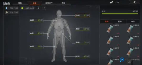 精准急救:开背包→切健康页,手动拖物资到损伤部位(例:先治腿恢复跑动)