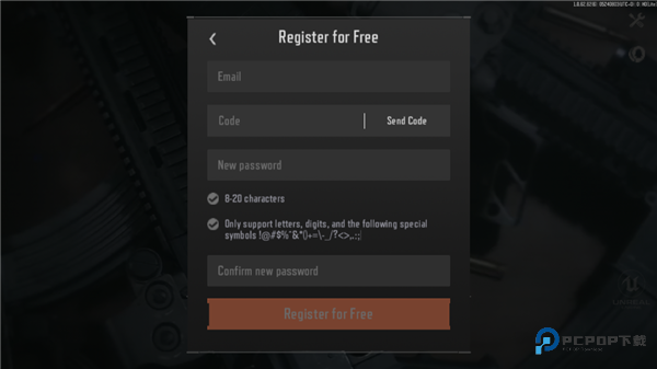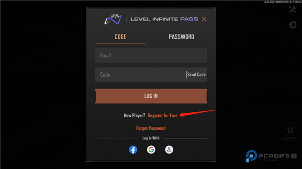 1、启动游戏后到首页界面,没谷歌账号就点免费注册入口;