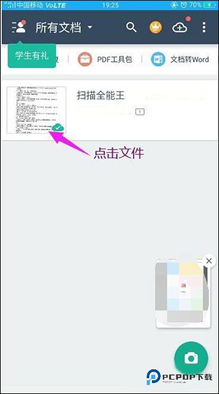 1、打开手机上的扫描全能王app,点击想要转换的文件。
