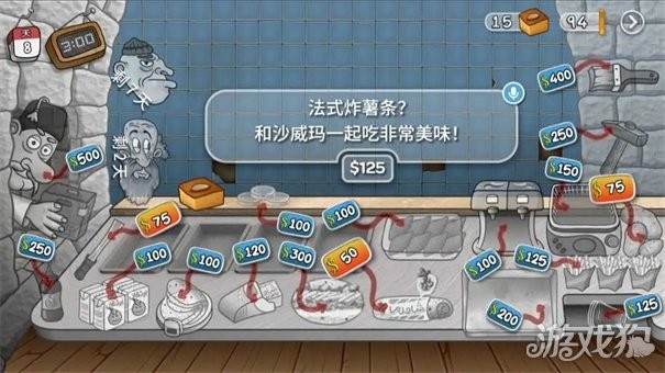 2、简化卷饼步骤,三步并两步/两步并一步。前期卷饼需要每个食材点三下,升级完只需要点两下。如果钱足够的话,可以直接升级成每个食材点一下。