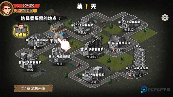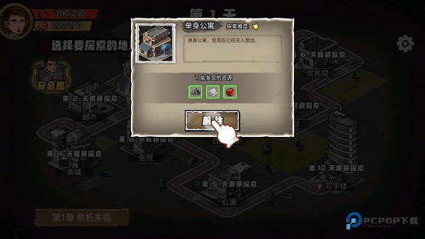 2、接着选择要探索的地点,新人玩家根据新手教学引导,开始探索单身公寓。