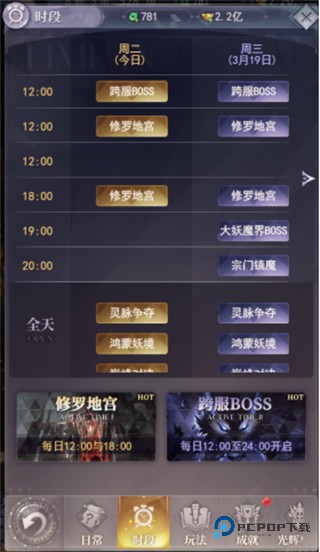 按小时分类展示全天活动安排,连次日行程都提前预告!快速扫一眼就能判断今日哪些活动能参与,再也不用担心错过限时玩法啦。