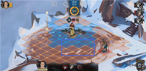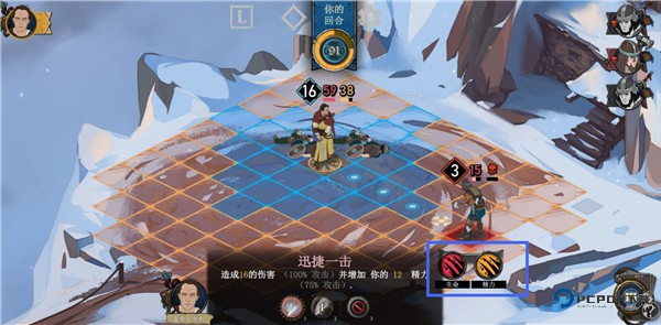 2、点击闪烁格子内的敌人可发动攻击;