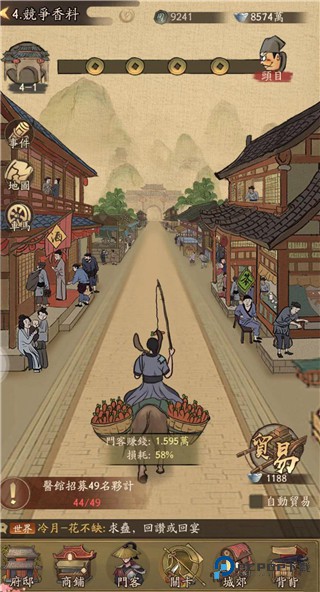 2、精妙的策略性致富路径!财富积累并非单一,商铺等级提升、门客委任任务、激活知己专属技能、游历收集资源等七大方向齐发力,共同构成高效赚钱网络。