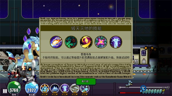 7、每一个怪兽都有5个独特的技能,你可以通过等级提升和花费技能点来解锁和升级;